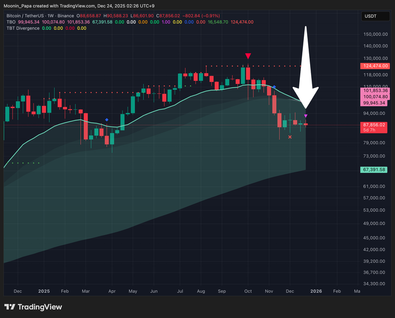 On the weekly chart, a TBO Open Short is in progress and, if confirmed by today’s print, will complete the TBO Bear Formula—a pattern that preceded the 2018 and 2022 bear markets. A brief rally toward the weekly TBO Fast line near $100,000 is likely to serve as a bull trap before a further decline.