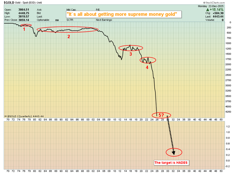 4. Horrifically many (most?) investors have “top called” themselves out of their metals by then… and they find themselves almost as impoverished as the rest of the citizens who never owned gold.