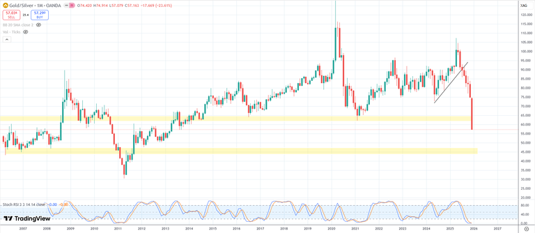 The gold to silver ratio seems to be preparing for a date with sub 45 - encouraging for silver longs looking to keep the squeeze going. However the ratio is also entering oversold levels historically not sustained uninterrupted for extended periods of time.