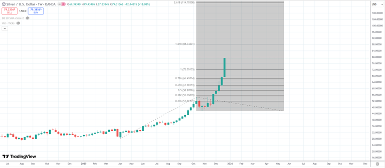 Silver continues to trade where historical resistance no longer offers a roadmap. Without reference to the left side of the chart, technical traders may shift toward tools like Fibonacci extensions, and use long-term moving averages to assess how stretched (or not) current price might be.