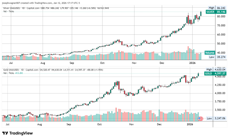 Gold and silver have achieved new record highs for the first time in 2026, reflecting mounting concerns over institutional independence and geopolitical stability. In spot market trading, gold reached $4,630 per ounce while silver touched $86.24 per ounce before retreating to $4,594 and $84.90 respectively by the time of writing.