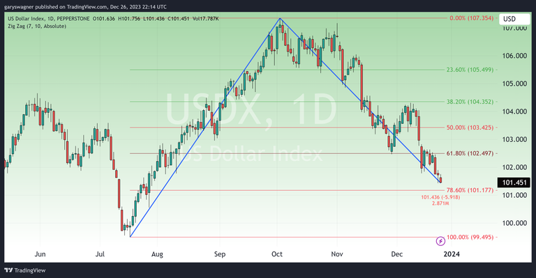 Dollar weakness contributed to today’s gains with the dollar currently down 0.27% taking the dollar index to 101.451. The dollar index traded to its highest value in 2023when on Tuesday, October 3 the dollar index breached 107.
