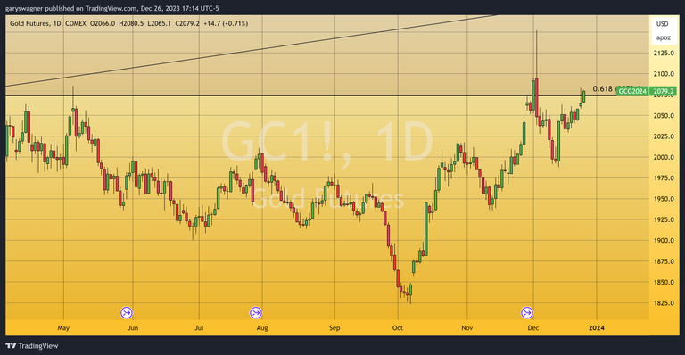 Gold continues to rise now for the third consecutive day. As of 4:28 PM EST, gold futures basis the most active February contract is currently fixed at $2079.10. Today’s gains are occurring with typical light holiday volume, today gold futures have had a volume of 75.571K. A tremendous difference from the largest volume this month. The largest volume this month occurred on December 4 with a daily volume of 378,224k contracts.