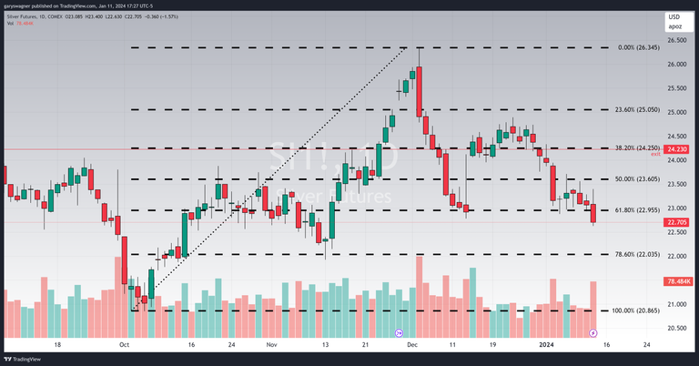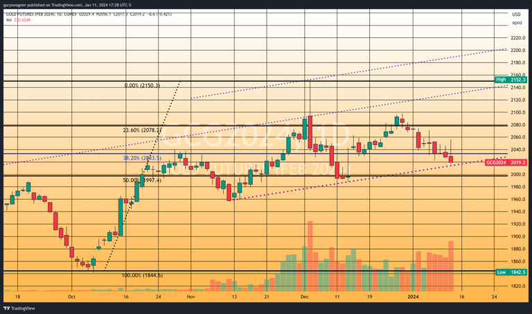 Gold futures opened at $2029.40 in New York, traded to a high of $2056.10, and a low of $2017.30. As of 5:21 PM ET, the most active February futures contract is currently trading down $8.60 or a decline of 0.42% and fixed at $2019.20 just a couple of dollars off of today’s intraday low. The same volatility appeared in the dollar trading to a high today of 102.793, a low of 102.183, and settling near the lower range of today’s price swings at 102.338 which is down 0.02%. Silver plunged by 1.57% or $0.36 taking the most active March contract to $22.70.