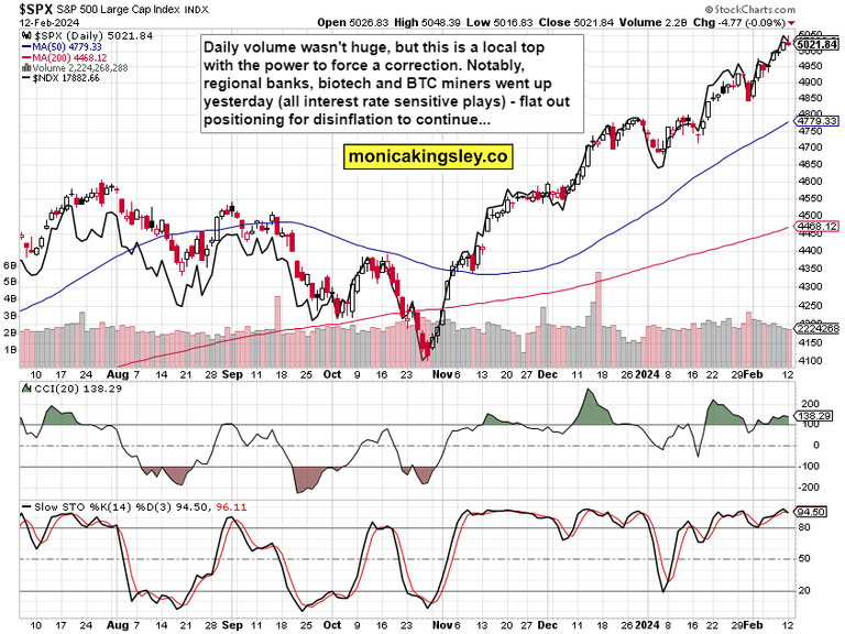 In line with my yesterday‘s extensive macroeconomic article, the bet is on a disinflationary CPI today, and that‘s also showing in gold and copper moves, the Bitcoin miners (as a side note, did you benefit from my latest ARM mentions at the onset of Friday?) and other interest rate sensitive plays beyond Russell 2000.