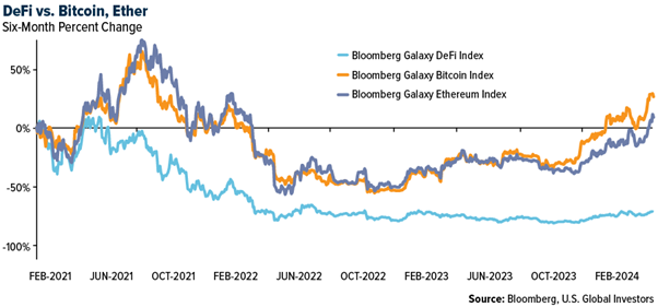 - The Bloomberg Galaxy DeFi Index of digital coins involved in decentralized finance rose 8.8% this week.