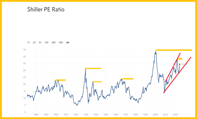 9. Double-click to enlarge. Stock market inflation is also in play. Basis the Shiller (CAPE) ratio, the US market is one of the most overvalued in history.