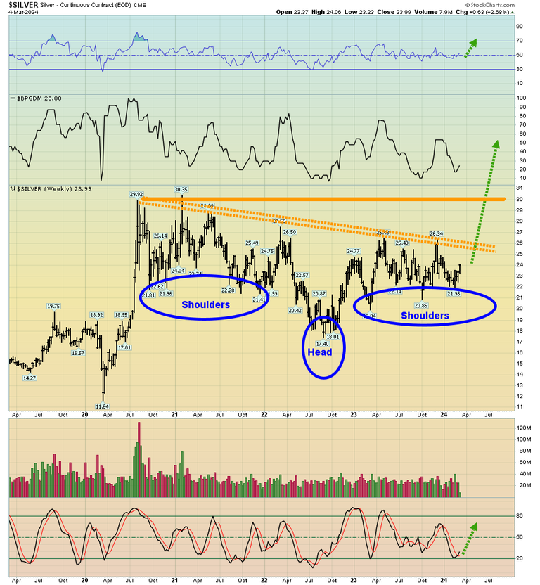 18. Speaking of silver. Double-click to enlarge this weekly chart. There’s a massive inverse H&S bull continuation pattern in play.