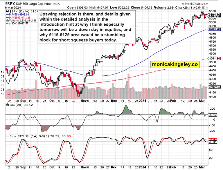 The key 5,088 level held in the premarket today, and then it soon became the question of how S&P 500 would fare in the 5,115 – 5,125 zone that should prove hard to overcome. 5,135 looks out of reach given that I expect low unemployment figure, which would hint some more at tomorrow‘s (unwelcome for the bulls) NFPs resilience.