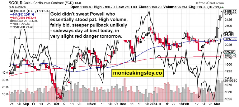 Gold didn‘t present even the briefest of pullbacks lasting 1-2 hrs during Powell, which only hints at (banking and more) pressures under the surface, in what I consider as likely to geneerate rise in yields and especially the dollar from quite beaten down levels.