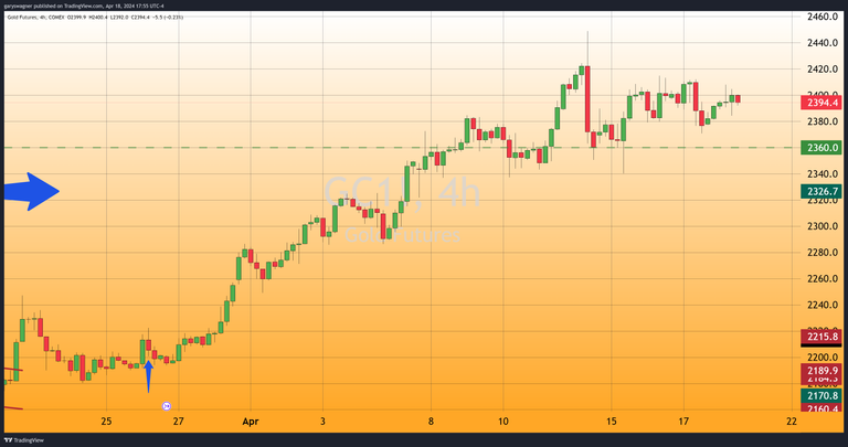 As of 5:30 PM EDT, gold futures for the most active April 2024 contract were fixed at $2,394.40, up $17.80 or 0.75%.