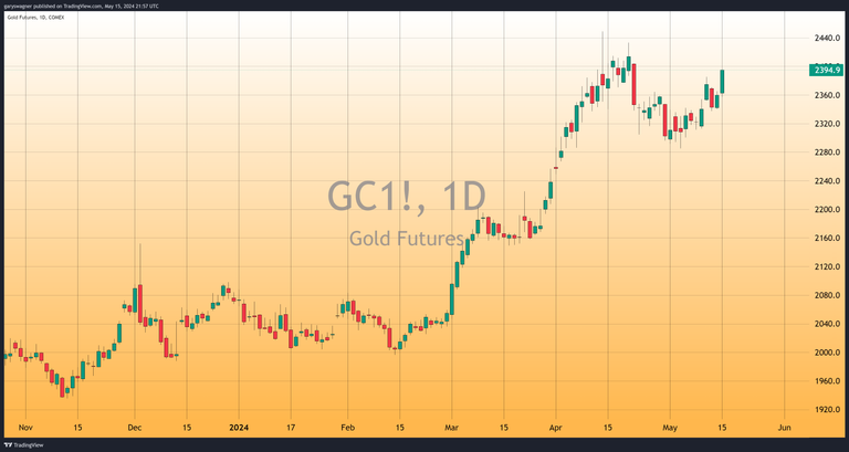 Conversely, gold prices surged in response to the softer inflation data and the accompanying dollar sell-off. As of 5:40 PM EDT, the most active June 2024 futures contract was trading 1.48% higher at $2,394 per troy ounce. With the precious metal benefiting from both inflation-hedge demand and dollar weakness, the next resistance level is seen at $2,400, followed by the record high of $2,448.