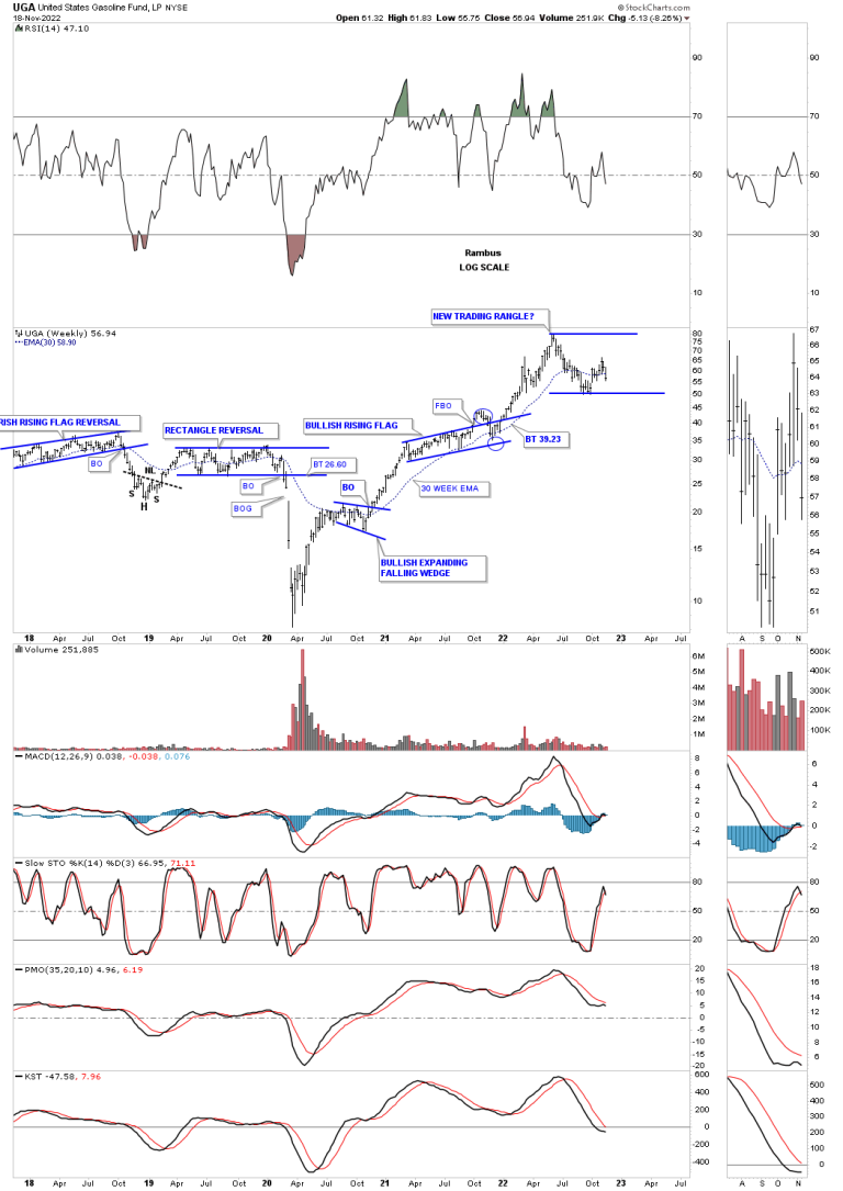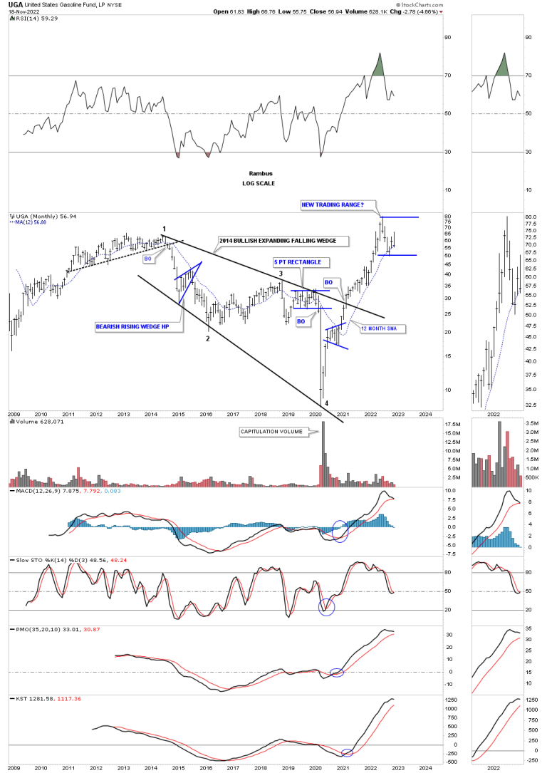Another area in the energy complex is UGA, US gasoline fund, which could be entering into a new consolidation phase similar to the previous two out of the 2020 crash low.