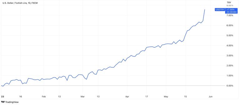 Therefore, Erdogan's win has further accelerated the depreciation of the lira as investors anticipate the continuation of such policies. Since 2021, the key rate in Turkey has steadily declined.