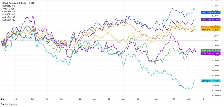 However, we also know that the US dollar has been on the decline this year, following its strong performance in 2022. In other words, it’s not surprising – the USD is losing ground against another major currency. Hence, it’s necessary to investigate if the pound is as good compared to the other majors.