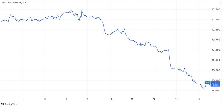 Last week’s fall of the DXY can be attributed to inflation figures. Inflation has been on a steady decline – the YoY metric is standing at 3% now. Inflation and a currency rate have a direct correlation mostly (although there are some exceptions, like the Turkish lira, but it’s an entirely different story). Central banks have a crucial role here, as they raise interest rates to combat inflation.