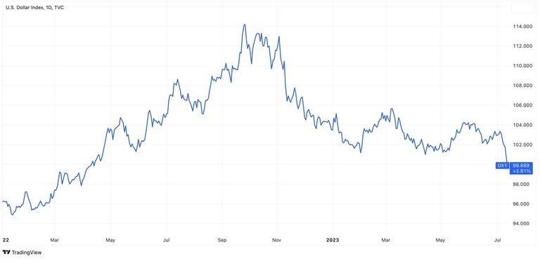 When we examine a more extended period, we will see that the DXY hasn’t dropped below the 100 mark since April 2022.