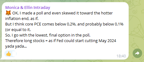 Trading and Stock Signals clients needn‘t be worried about positioning for a low core PCE figure when used car prices and oil hadn‘t been adding to the heat (and S&P 500 went through the anticipated setback yesterday – and it turned out really shallow), and I kept our intraday clients in the loop as well with this prediction yesterday (time stamp is 1hr before London as always):