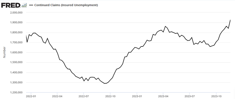 As further evidence, continued unemployment claims have risen materially, which adds further fuel to the bearish thesis. The metric measures the number of Americans who have filed for unemployment more than once.