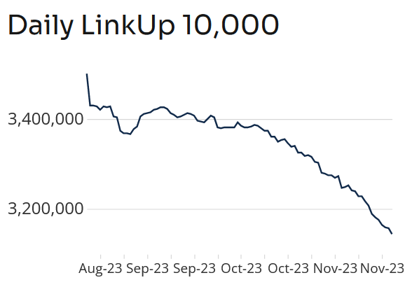 LinkUp’s employment index tracks the hiring intentions of the 10,000 largest employers with the most U.S. job openings. And with the metric suffering a serious slide, it’s no wonder crude oil has come under pressure.