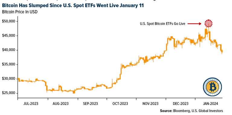 Bitcoin has fallen over 20% since the January 11 launch of the first exchangetraded fund investing directly in the token as speculators become more cautious about the potential impact of the products, writes Bloomberg.