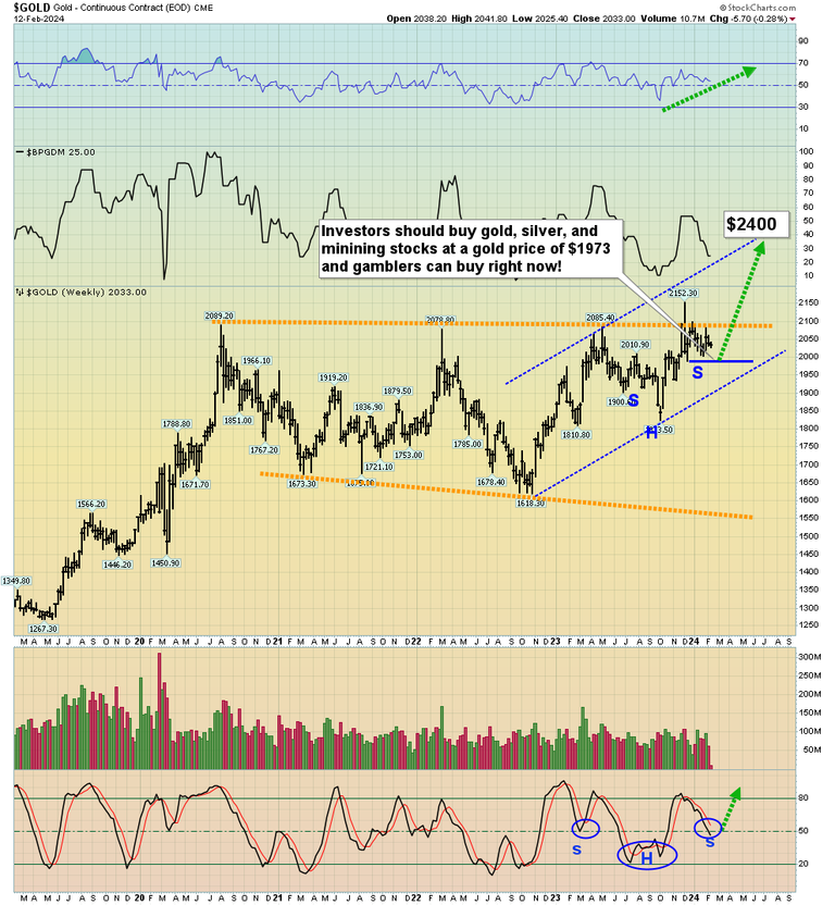 For some insight into these vital matters. Double-click to enlarge this weekly gold chart. Gamblers should buy an array of metals-oriented items right now, using small size or stoplosses to manage their risk.