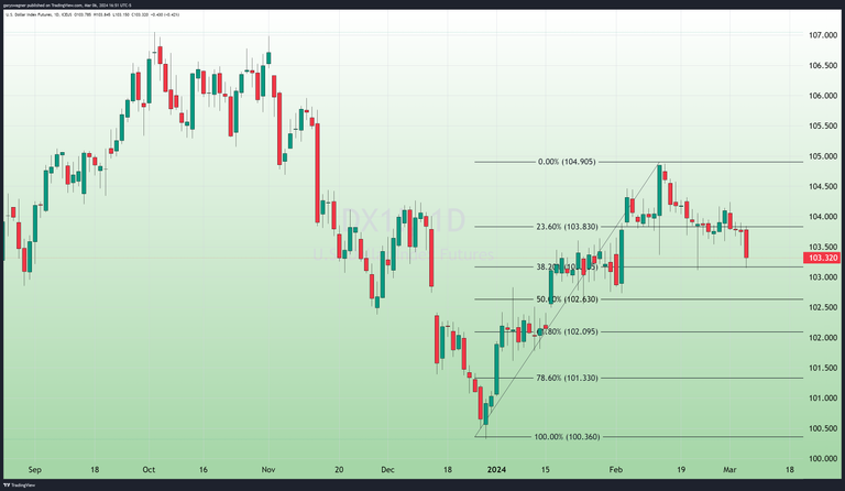 However, the dollar declined across the board after Chairman Powell said that continued progress on inflation “is not assured” though the central bank still expects to cut its benchmark interest rate later this year. The dollar declined by 0.42% in trading today taking the dollar index to 103.32. Dollar weakness combined with investors actively bidding gold prices to a new record closing price.