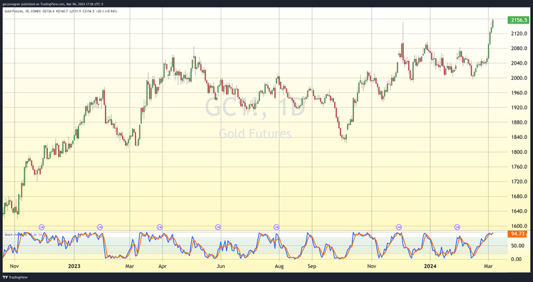 As of 5:47 PM ET gold futures basis the most active April contract is currently trading 0.93% higher up $20.00 and fixed at $2156.20. This means that dollar weakness provided just under half of today’s gains in gold with market participant's strong bullish sentiment providing the remainder of today’s gains.