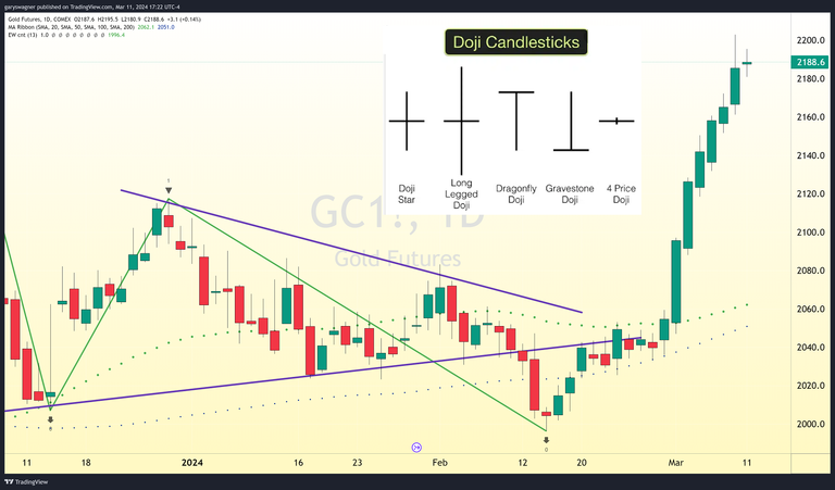 Gold traders and investors are acutely aware of the dynamic impact that tomorrow’s CPI report will have on multiple financial sectors, including gold prices. Gold futures basis, the most active April contract traded to a higher low, and a lower high than Friday. Although gold is trading fractionally higher than Friday’s close, today’s trading range and the open and closing prices have formed a Japanese candlestick called a “doji” which means “the same thing” in Japanese.