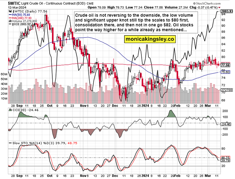 S&P 500 was predictably roiled by CPI above expectations more than by core PCE data end Feb, but even two good intraday moves weren‘t enough to break below Monday‘s lows and deliver a less shallow correction. Weren‘t it for increasing intraday volatility in Bitcoin, its stock plays (MSTR, COIN and MARA), it would be all fine and being long would have been the reasonable peace of mind proposition.