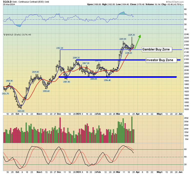 Double-click to enlarge. On this daily chart, gold is finding great support at the previous $2152 high, and I urged gamblers to buy as the price went there.