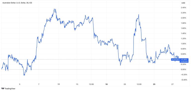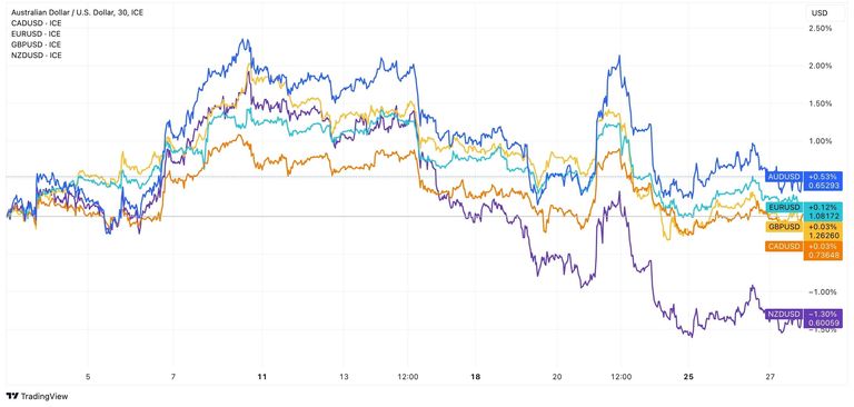 However, even with this 0.5% growth, the Australian dollar fared better than other major currencies during the same period. The following chart straightens up the head to the AUD’s outperformance against the US dollar, the euro, the pound, the Canadian dollar, and the New Zealand dollar.