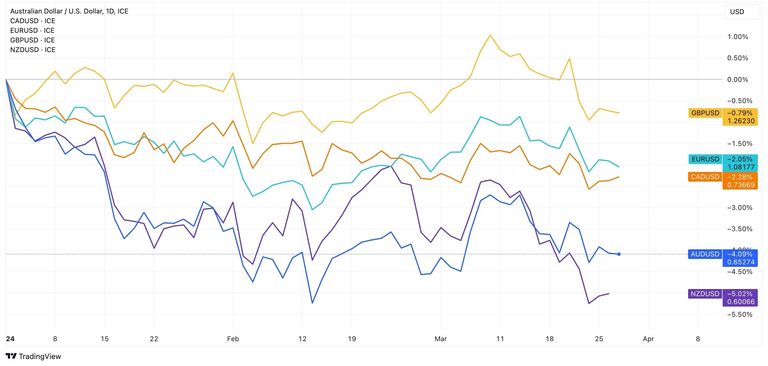 In March, the Aussie dollar, often seen as an underdog in the currency world, showed some promise against the US dollar. However, it lost ground in the latter part of the month. Let’s take a closer look at what’s going on with the AUD/USD pair and the struggle the Australian dollar may face in the future.