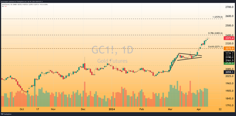 As of 5:30 PM EDT, gold futures hit a new record high of $2,384.50 per ounce, with the most active June contract closing up $11.40 at $2,362.40. This marks the eighth consecutive day of significant gains for the precious metal, driven by a trifecta of fundamental forces.