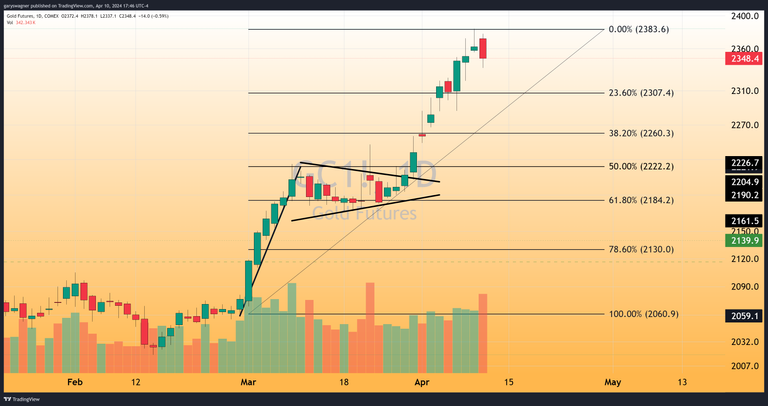 Because gold pricing is inversely correlated with the dollar, there is a strong negative relationship between dollar strength and gold prices. Spot gold declined by 0.79% or $18.68, taking spot gold to its current value of $2,333.46. The most active April futures contract of gold is currently down 0.59% or $14, fixing gold futures at $2,348.40. Because the net declines in both spot gold and futures were less than the gains in the dollar index, one can derive that it was dollar strength that accounted for more than 100% of today's decline, and that fractional or modest buying continues to be prevalent in current gold pricing.