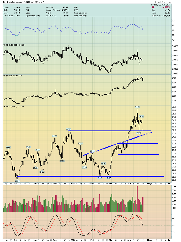 Double-click to enlarge. Gold stocks tend to bottom at one of their support zones along with gold, but which one it will be is unknown. That’s why it’s so important to focus on the $2220-$2150 zone for gold.
