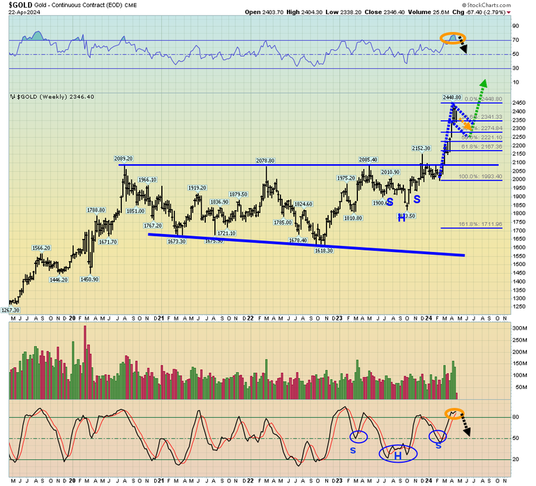 - It’s possible that gold bottoms here and resumes the rally or range trades between $2432 and $2300, but for actual buying, it’s important that investors choose prices and set-ups that offer the highest odds of success.