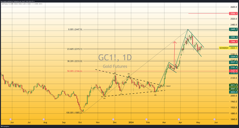 Federal Reserve statements along with dollar strength have resulted in today’s decline in gold pricing. The dollar is currently trading up 0.29%, taking the index to 105.26. As of 5:40 PM ET gold futures basis the most active June 2024 contract is trading lower by seven dollars, or 0.30%, and fixed at $2,324.20. Gold’s percentage decline is almost exactly the percentage gain of the dollar index. We can extrapolate that dollar strength was the primary force moving gold lower on the day.