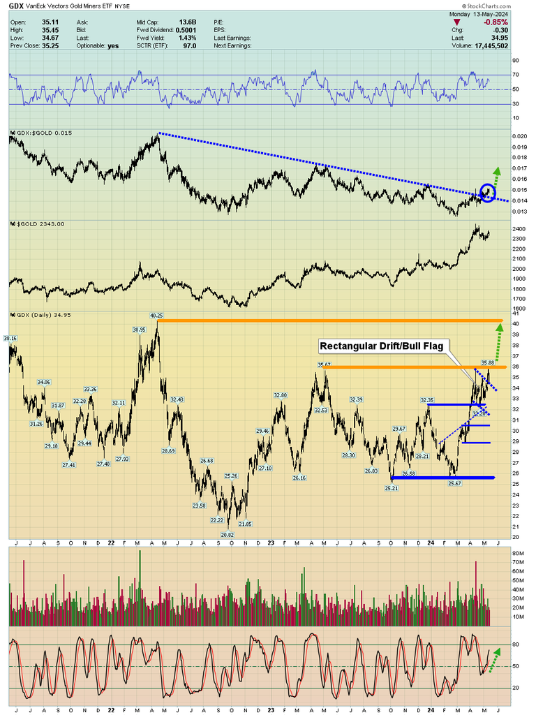 Double-click to enlarge this ultra-bullish GDX chart. A surge to $40 (and then $43) would be a near-certainty if there’s a close above $36.