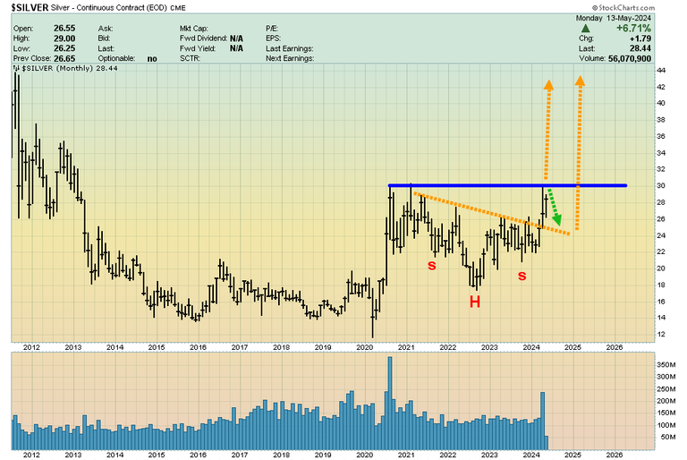 - That opens the door to the formation of an ominous H&S top, with a left shoulder fully formed now.