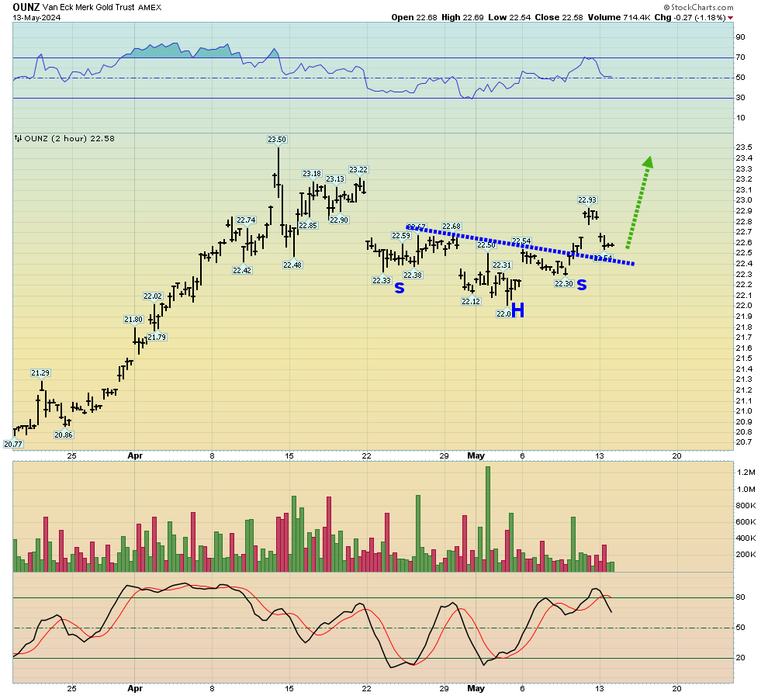 Double-click to enlarge. On the short-term chart there is inverse H&S action. That’s bullish.
