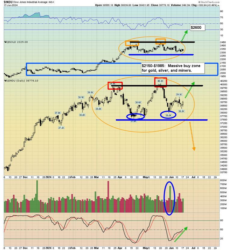 - The significant synergy between the Dow (US stk mkt) and gold bullion continues.