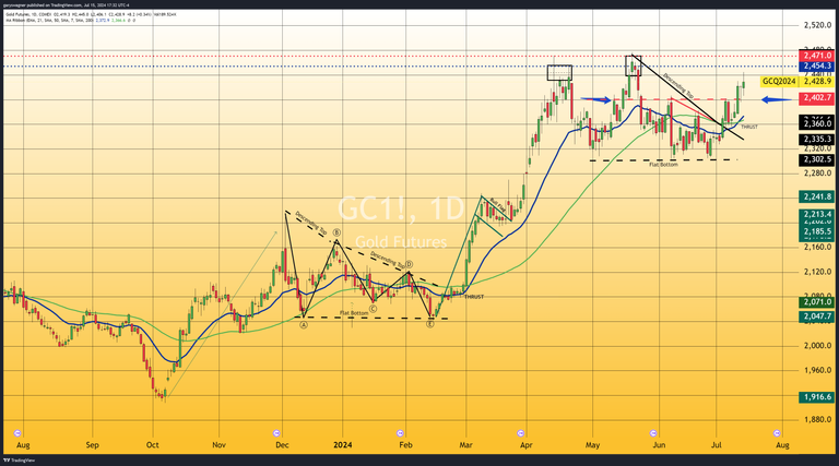 This shift in the Fed's stance has had a positive impact on financial markets. Gold prices, in particular, saw a moderate increase, with the most active August contract rising by $8.20 (0.32%) to $2,428.90 as of 5:00 PM ET.