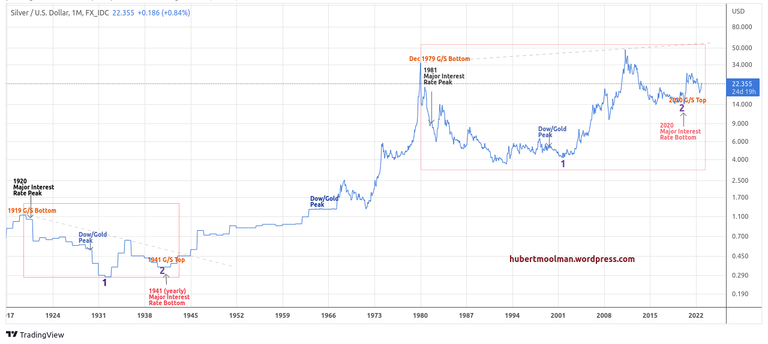Here is a long-term silver chart compared to a long-term Dow/gold ratio chart: