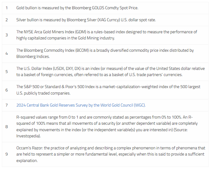 The 2024 Central Bank Gold Reserves Survey by the World Gold Council (WGC)7 provides significant insight into the buying intentions and perspectives of central banks, which have been the primary price setters of gold bullion since the third quarter of 2022. The WGC Survey reaffirms that central bank reserve managers plan to increase their gold holdings further. They cite gold's role as a long-term store of value and inflation hedge, its strong performance during times of crisis, its function as a portfolio diversifier and its immunity to default risk. The WGC Survey indicates that these results occur against a backdrop of geopolitical tensions (including the Middle East, the Russia-Ukraine war and U.S.-China trade tensions) and macroeconomic stress factors, including high inflation and uneven global growth. These combined geopolitical and macroeconomic concerns are reflected in interest rate levels, inflation concerns and geopolitical instability within the WGC Survey.
