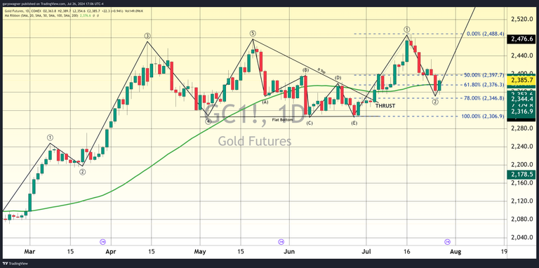 This optimism has translated into significant gains across financial markets. The Dow, S&P 500, and NASDAQ composite indices all rose over 1%. Gold futures basis the most active August contract jumped 0.96% to settle at $2,386. The precious metal's price has now surpassed its 50-day simple moving average, with technical analysis