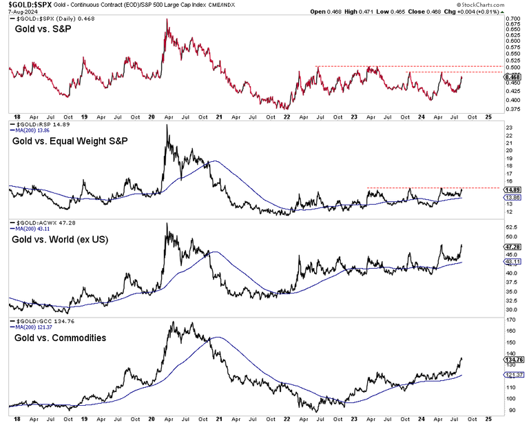 Gold against the Equal Weight S&P 500 is inches from a major breakout and its own three-and-a-half-year high.