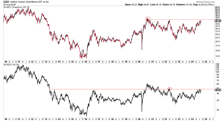 A weekly close of $41 in GDX would mark the highest weekly close since the end of 2012.