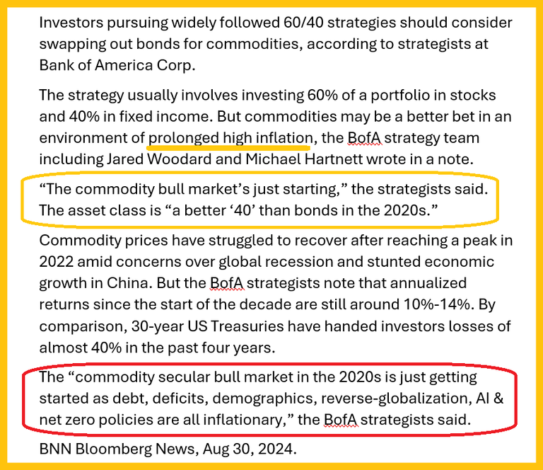 Double-click to enlarge. While Bank of America strategists don’t want rate hikes, they do see structural inflation coming into play, and that means higher commodity prices are here to stay.