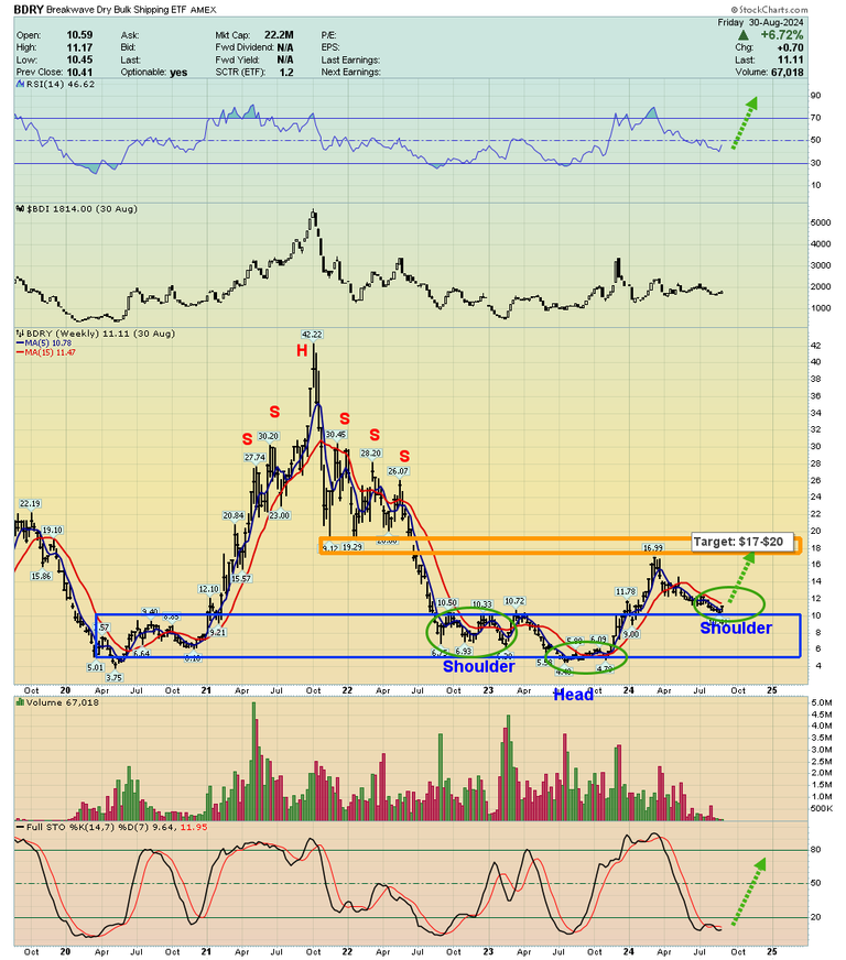 - The initial target zone of $17-$20 represents an almost 100% surge in shipping costs from the current level… and it could be argued that the base pattern will ultimately send the price towards $30.